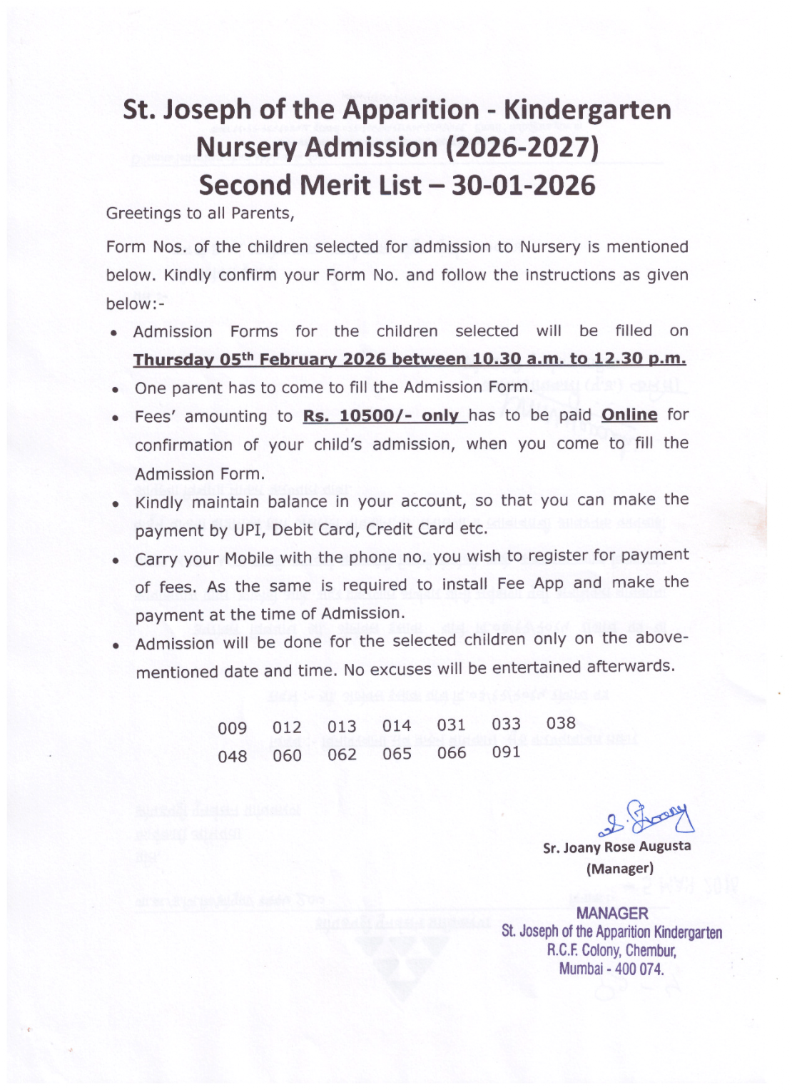 Nursery Non RCF - Loreto Convent School